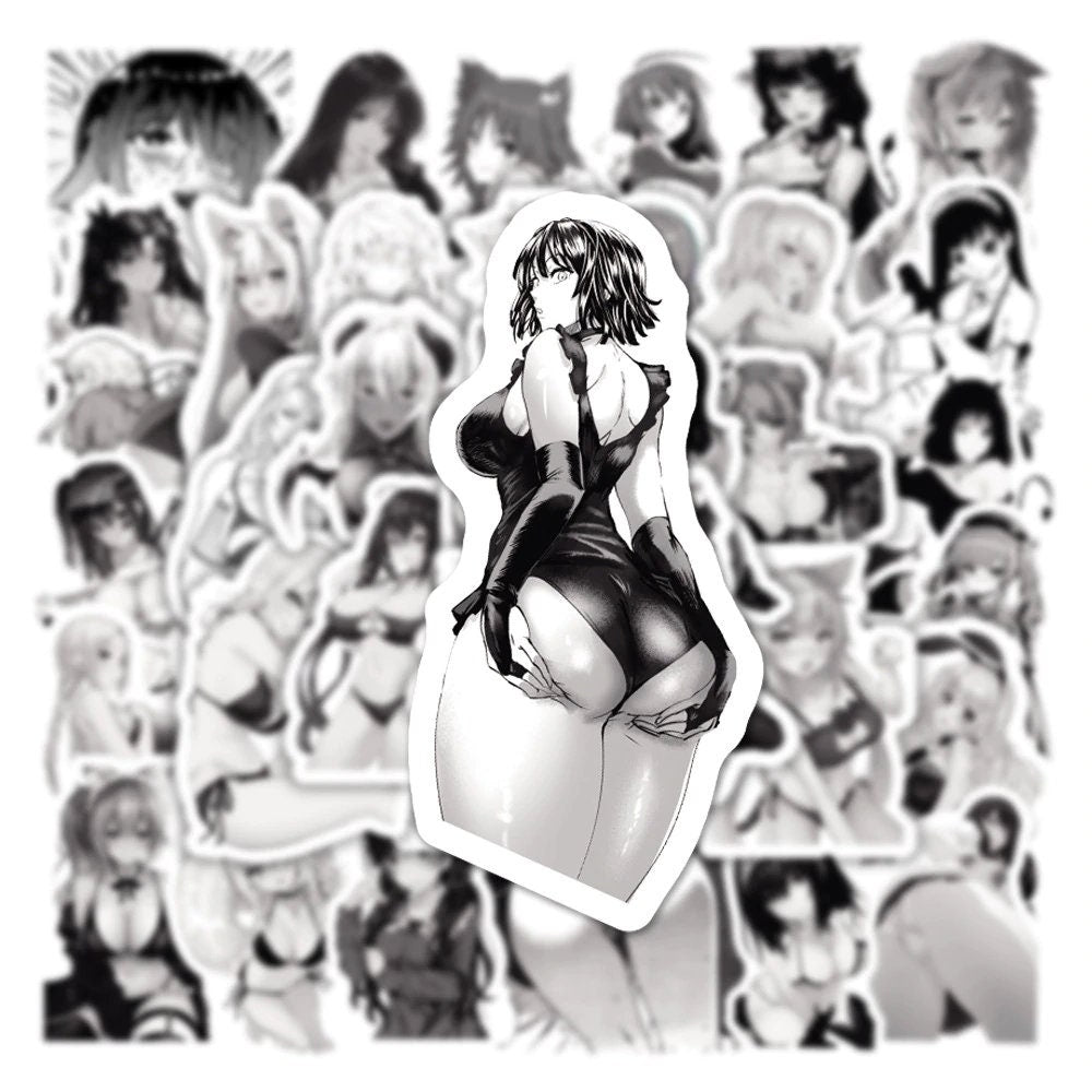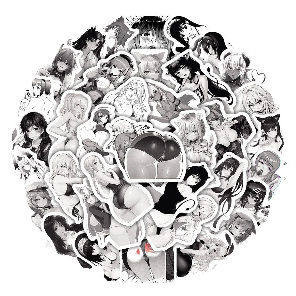 50 pcs Black and White - Sexy Anime Sticker Lewd - Waifu Ecchi Manga Anime