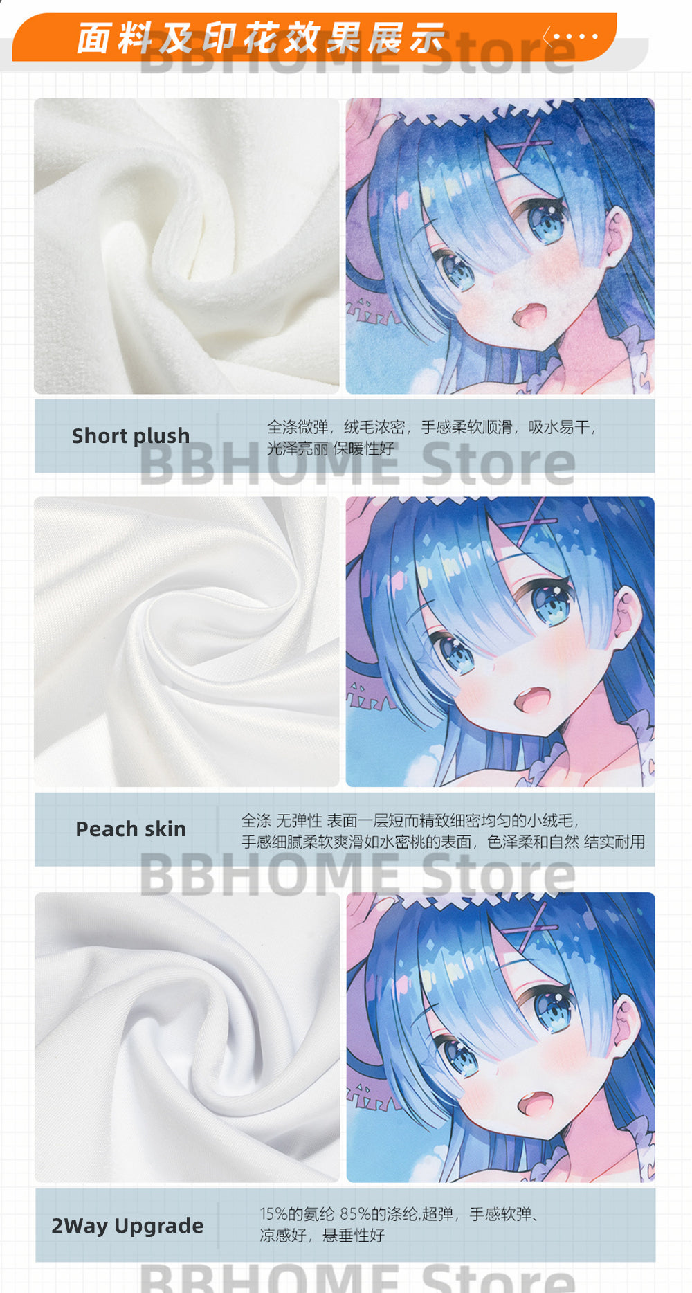 Difference between peach skin and 2way tricot on the picture preview.